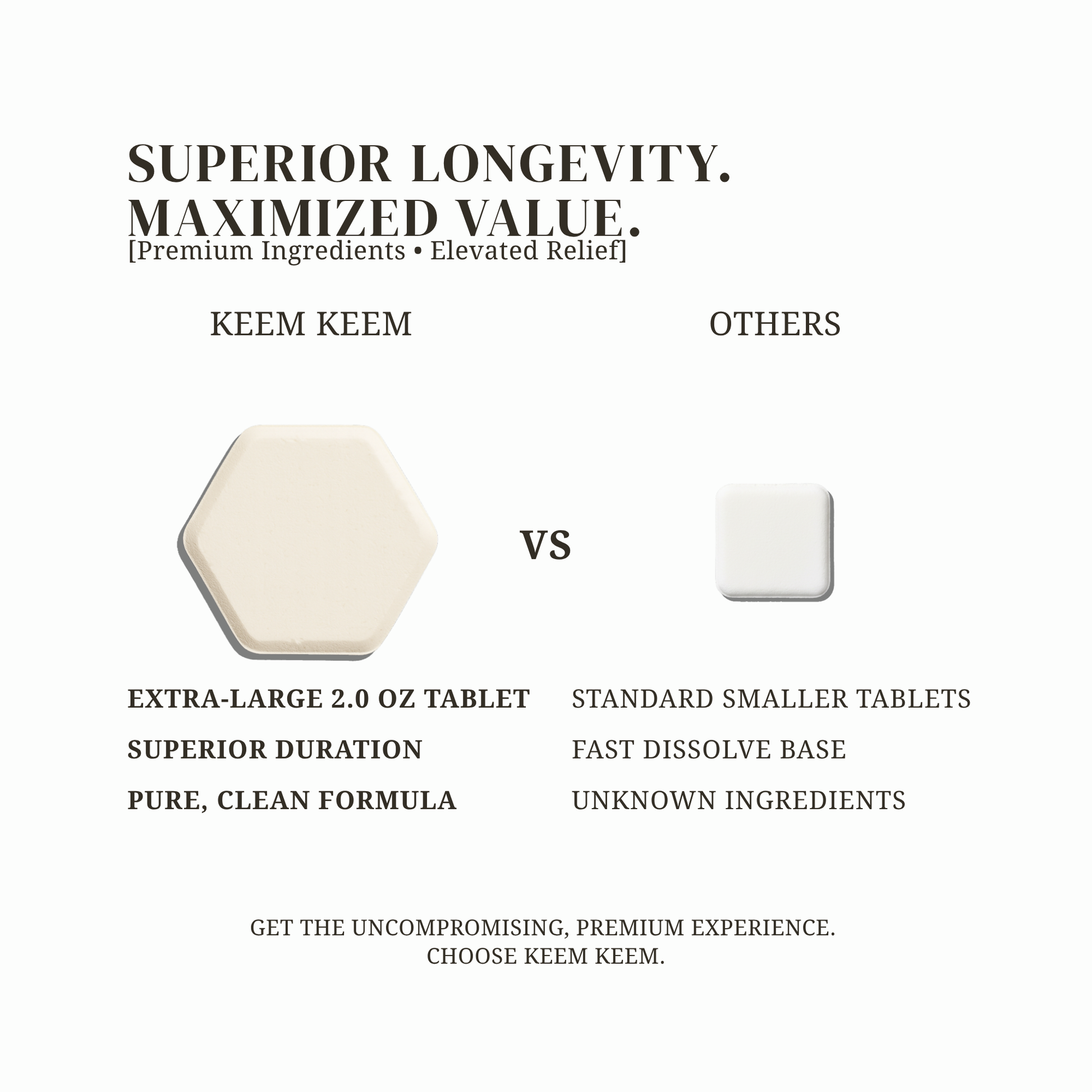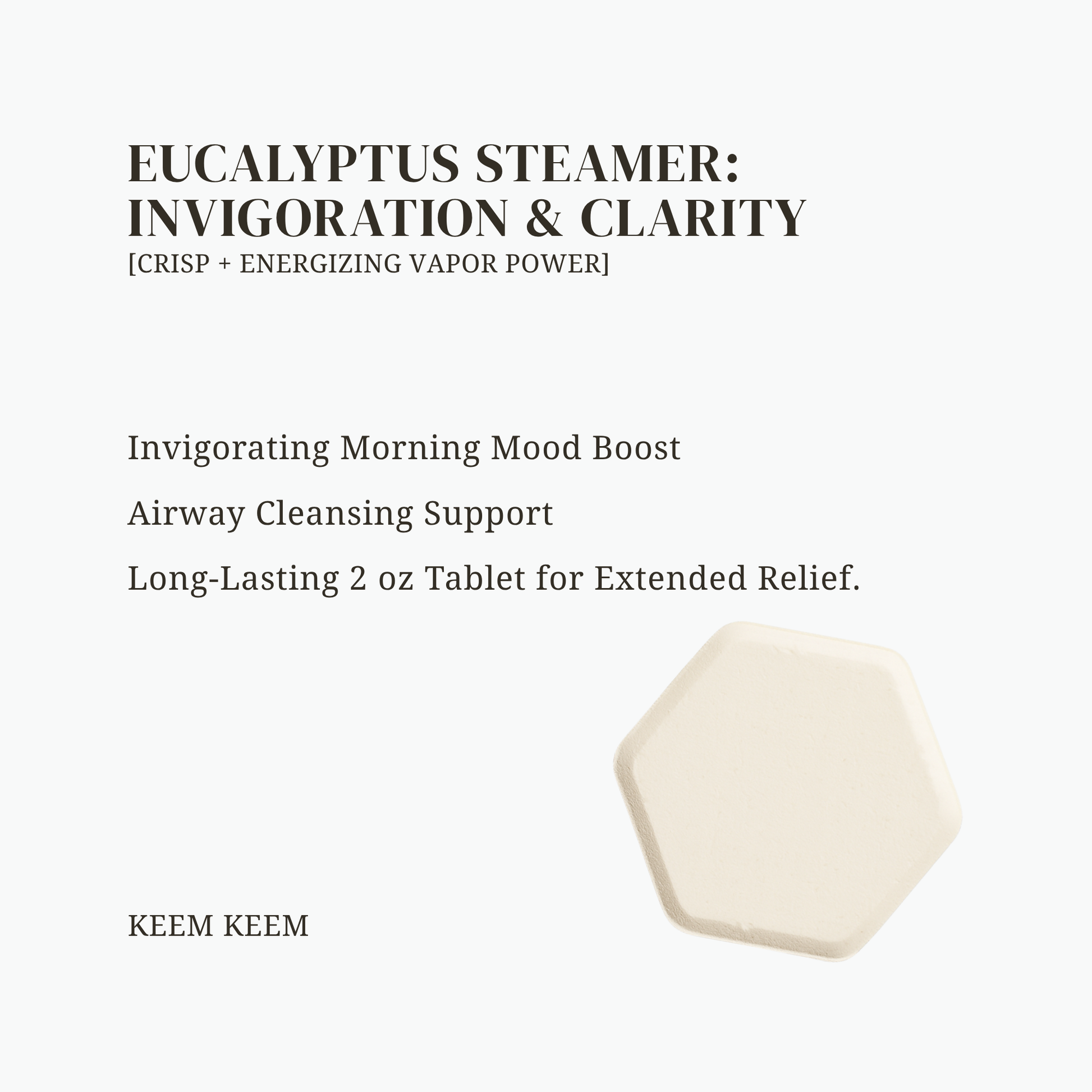 Keem Keem’s Eucalyptus Shower Steamers are made with pure eucalyptus globulus essential oil for an authentic, refreshing vapor experience. They’re free from synthetic perfumes and crafted with a clean, minimal formula for a true spa-like shower.