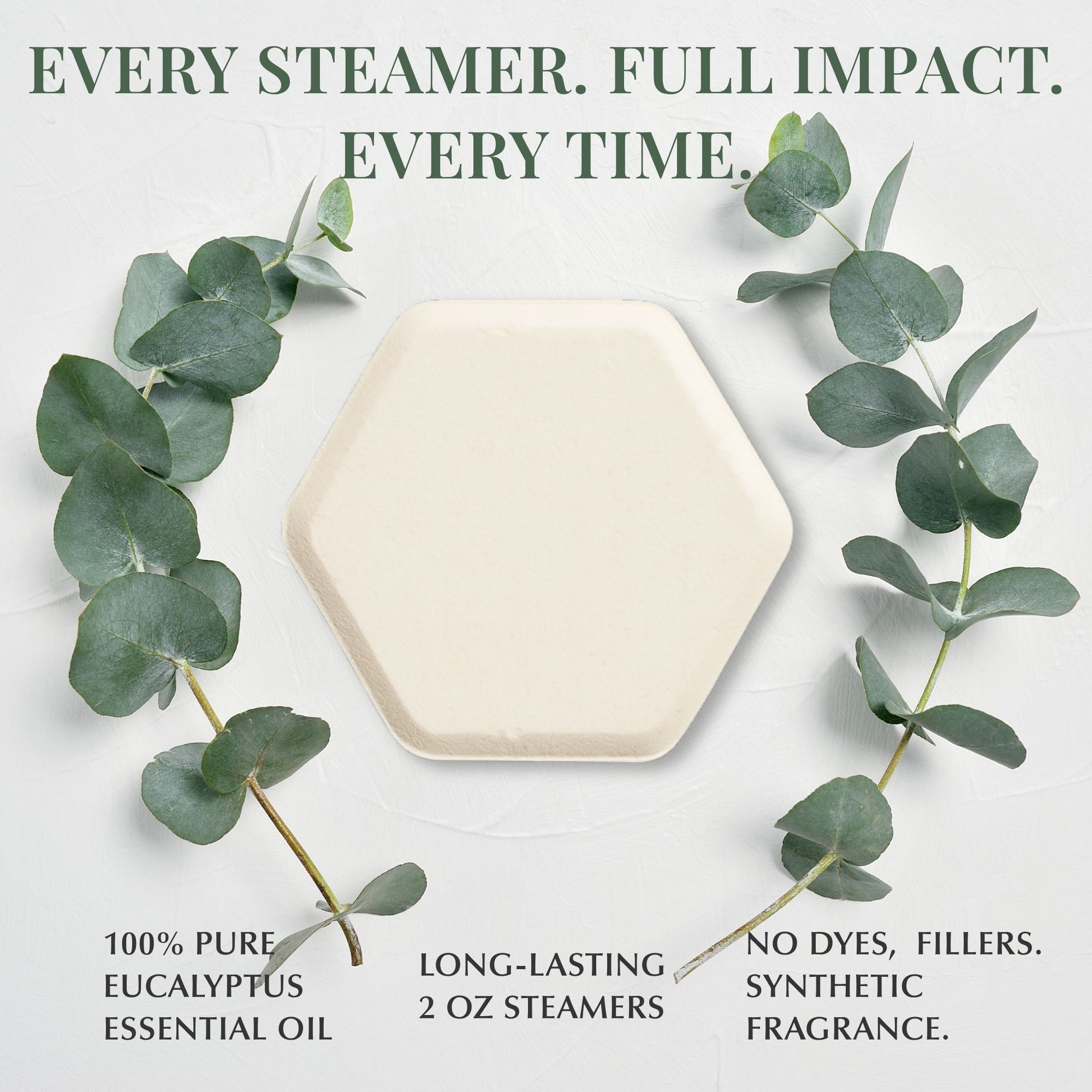 Clarity in the steam. Eucalyptus Shower Steamers bring a refreshing lift to your shower, releasing crisp vapors of pure eucalyptus essential oil. Each steamer supports easier breathing, helps unwind built-up tension, and creates an invigorating atmosphere that awakens both body and mind.