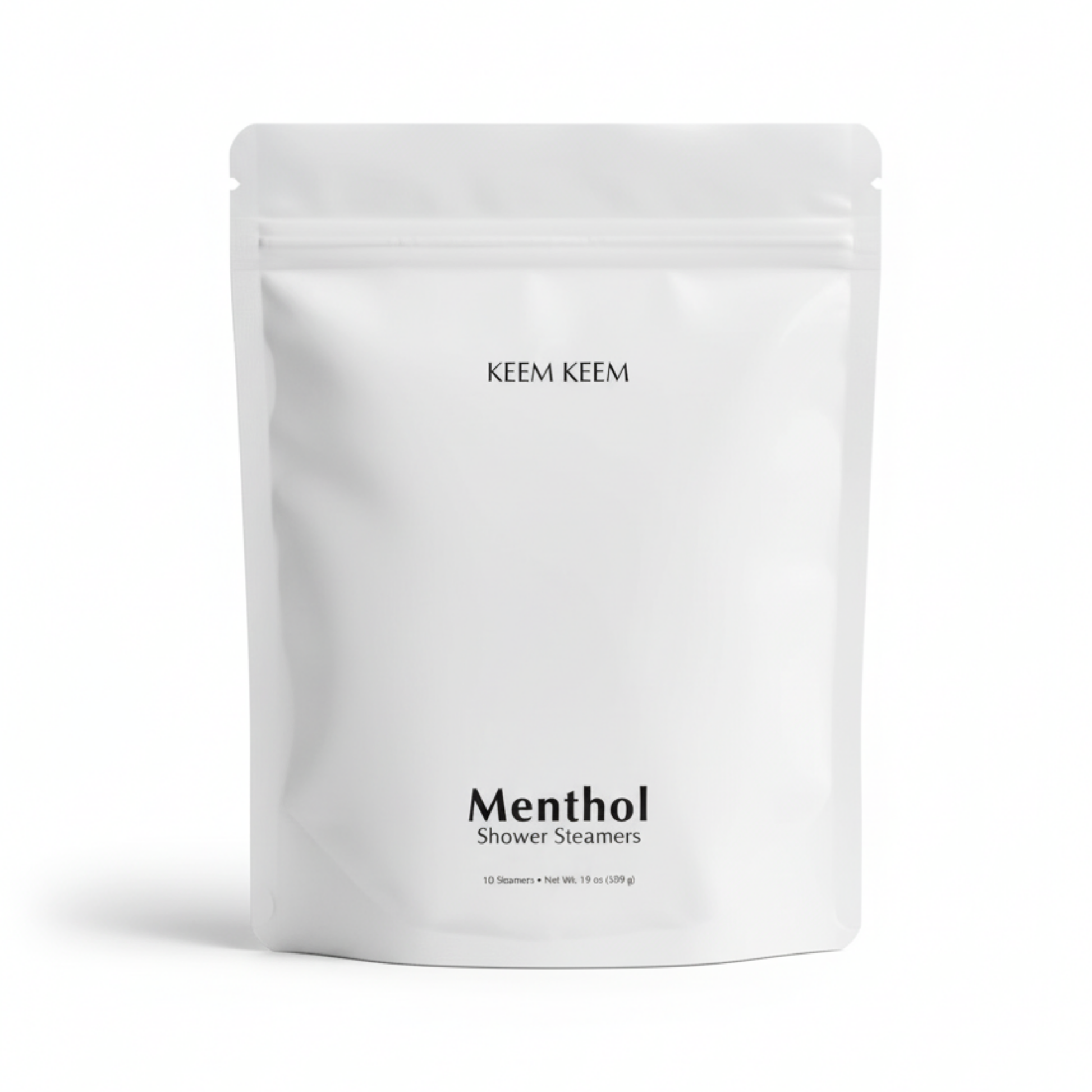Keem Keem’s Menthol Shower Steamers lean intoextra-strength potencyby using pure menthol crystals as the hero ingredient. This makes them crisper, stronger, and more effective at creating cooling vapors than diluted oil blends or synthetically fragranced steamers. Paired with a minimal base, they deliver a concentrated vapor release that stands apart.